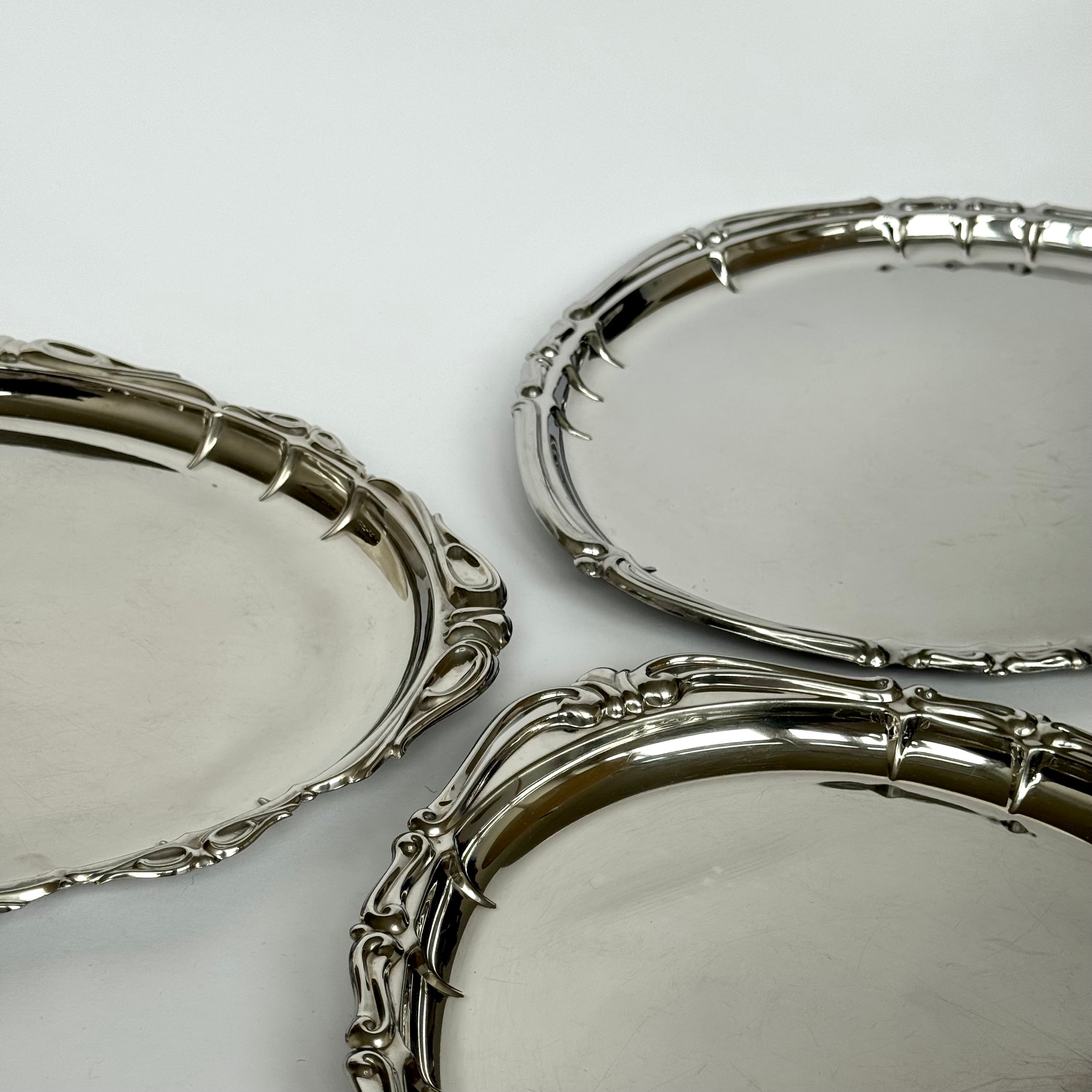 This collection is regularly changing and there are considerably more steel serving trays than listed here. Please reach out for further details as needed.